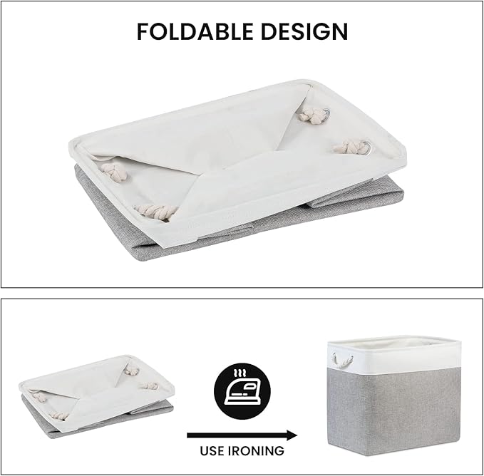 • [Foldable Baskets Set] Simply fold the canvas basket down flat for space-saving storage when not in use or when needing to transport. The basket stays filled for a while and then stays standing. If you mind the creases, you can use an iron to iron the creases in the basket. If you do not use an iron, the creases will slowly disappear as you store your items.