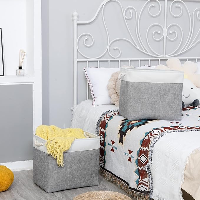 • [Cotton Rope Handles&Premium Fabric] Lightweight storage baskets with cotton rope handles, easy to move and more comfortable grip. Sturdy soft handles on both sides are convenient to retrieve from shelves. These storage baskets are made of durable fabric which is strong and lightweight