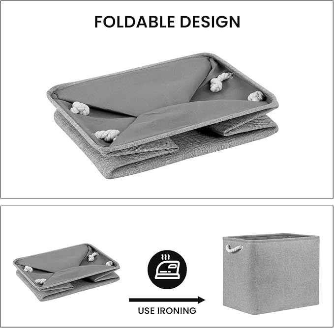 • [Foldable Baskets Set] Simply fold the canvas basket down flat for space-saving storage when not in use or when needing to transport. The basket stays filled for a while and then stays standing. If you mind the creases, you can use an iron to iron the creases in the basket. If you do not use an iron, the creases will slowly disappear as you store your items.