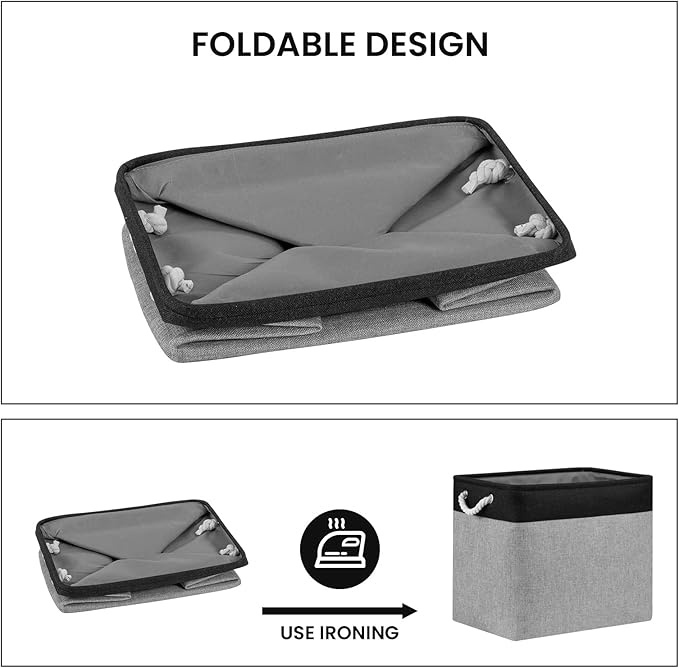 • [Foldable Baskets Set] Simply fold the fabric basket down flat for space-saving storage when not in use or when needing to transport. The basket stays filled for a while and then stays standing. If you mind the creases, you can use an iron to iron the creases in the basket. If you do not use an iron, the creases will slowly disappear as you store your items.