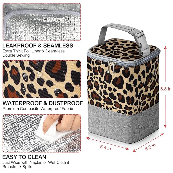 • LARGE CAPACITY: The milk bottle cooler bag's size is 9.05 x 5.9 x 5.9(in)/23 x 16 x 16(cm). Suitable for up to 4 large 8oz baby bottles at once, meet baby daily needs. Perfect cooler bag for transporting breast milk from work to home or leave with daycare. It also can be used as lunch bag.