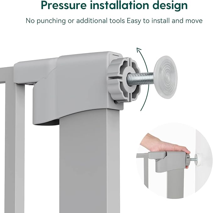 • EASY SET UP: Simple and quick pressure installation, not require additional tools and no holes in the wall. NOTE: Before installation there will be a gap between the gate latch and the frame which is NOT a defect and it is NOT bent. This gap will be eliminated once installed.
