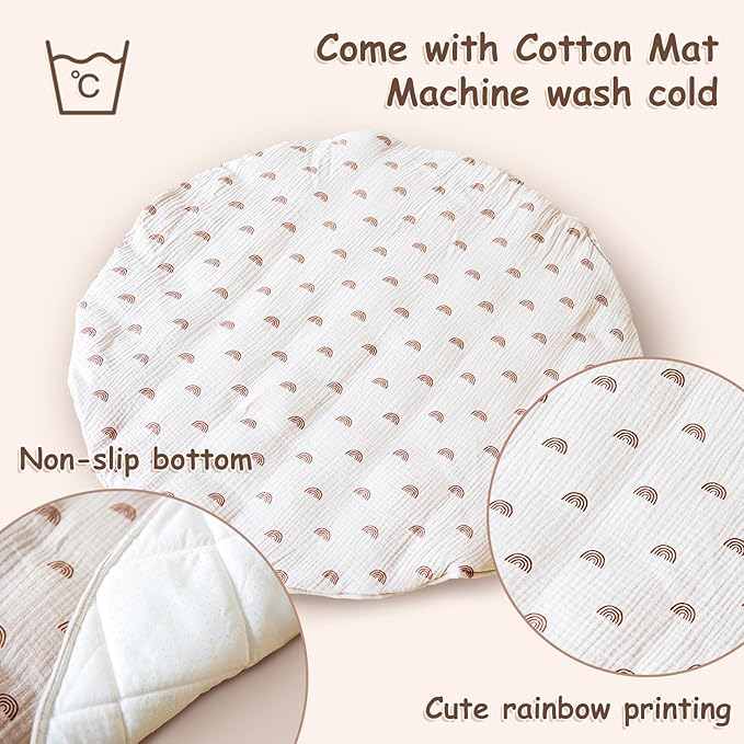 • Baby Gym with Mat - Soft and thick, machine washable play mat, The playmat is a 86cm diameter, 7cm high round cushion, able to give the baby space comfort.