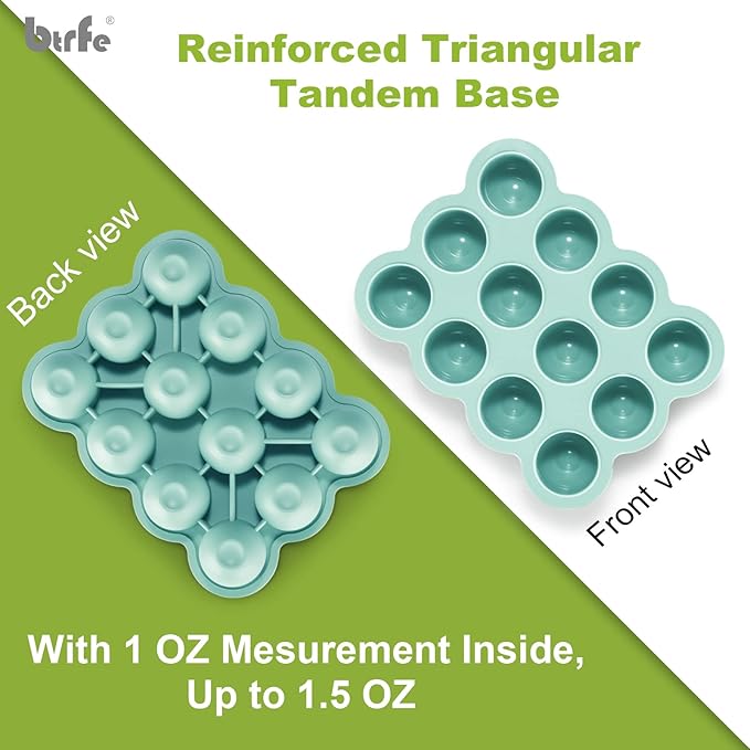 • [Twelve 1.5 oz. portions]: Each 1.5oz section has a 1 ounce capacity marker. Freeze full meals and smaller snacks, or mix to match with a variety of baby's favorite foods, to meet baby's growing nutritional needs.