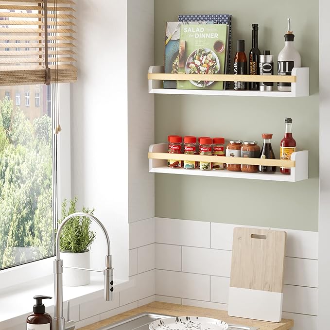 • Safe and Functional: Built with a safety rail, these shelves securely display books, frames, and small decor items.