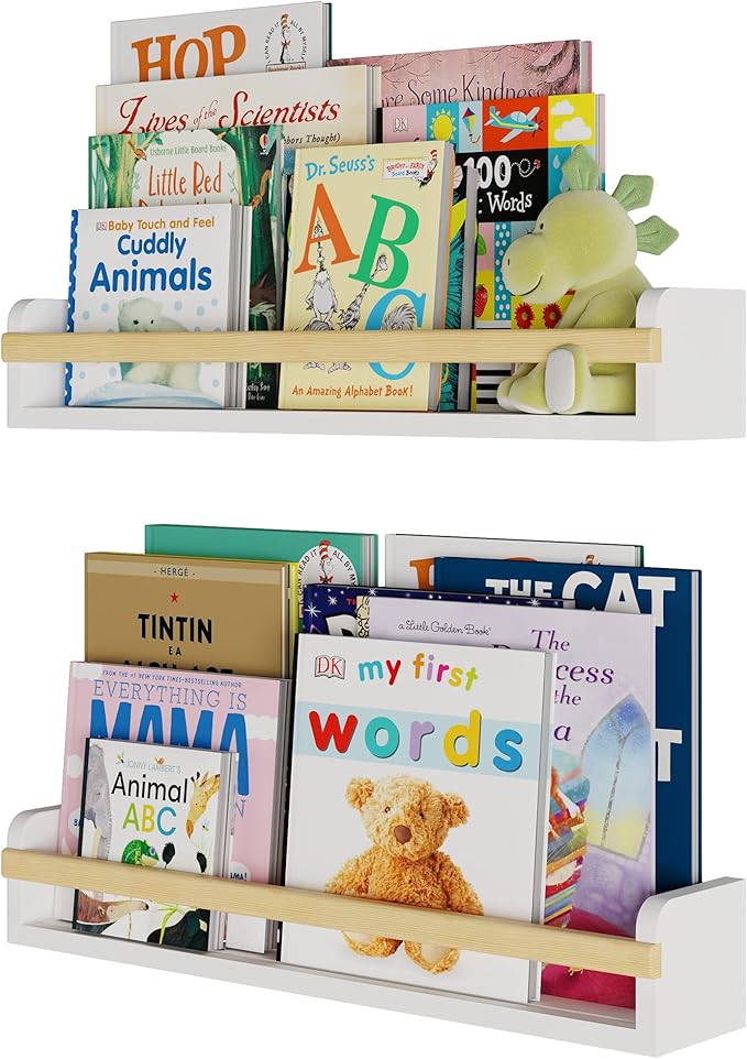 • Durable Design: Solid wood construction ensures these nursery book shelves can hold items from early childhood to the teenage years.