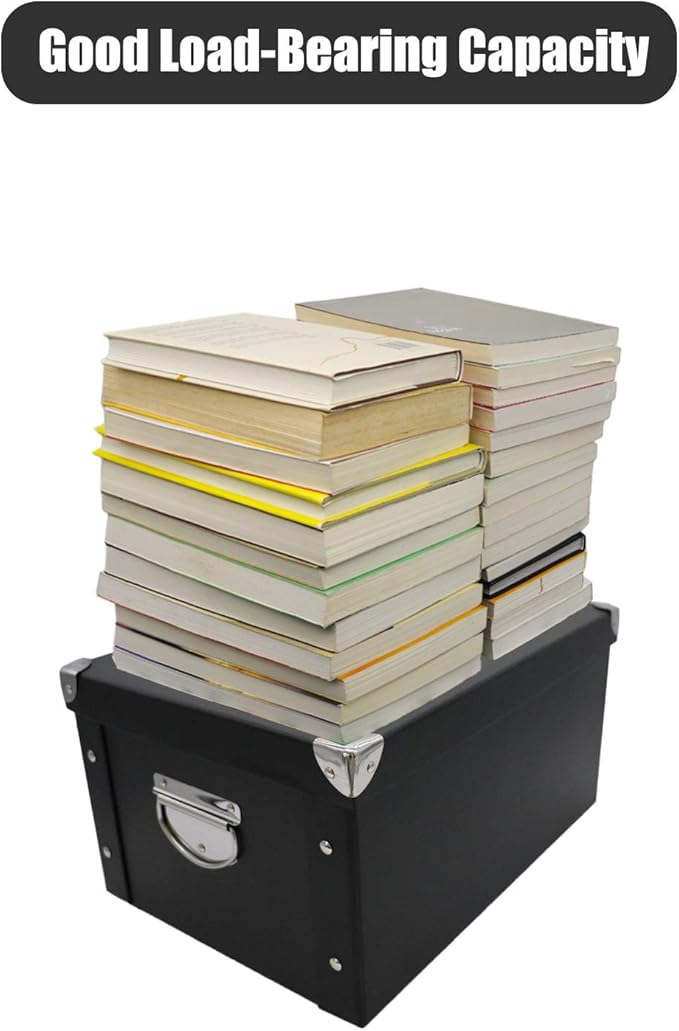 GUOZI Collapsible Storage Box, Decorative Memory Box with Lid & Metal Reinforced Corners, Organizer Gift Box for Keepsake Toy Photos Office Nursery Wardrobe Bookshelf (2Pcs-Black, 35 * 25 * 17.5cm)