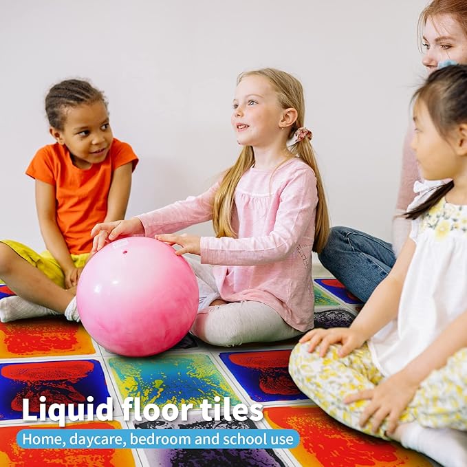 • Includes 4 pieces of Liquid Motion Floor Tiles, size of each tile is 11.8" x 11.8", easy to clean and disinfect,safety and health.