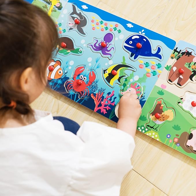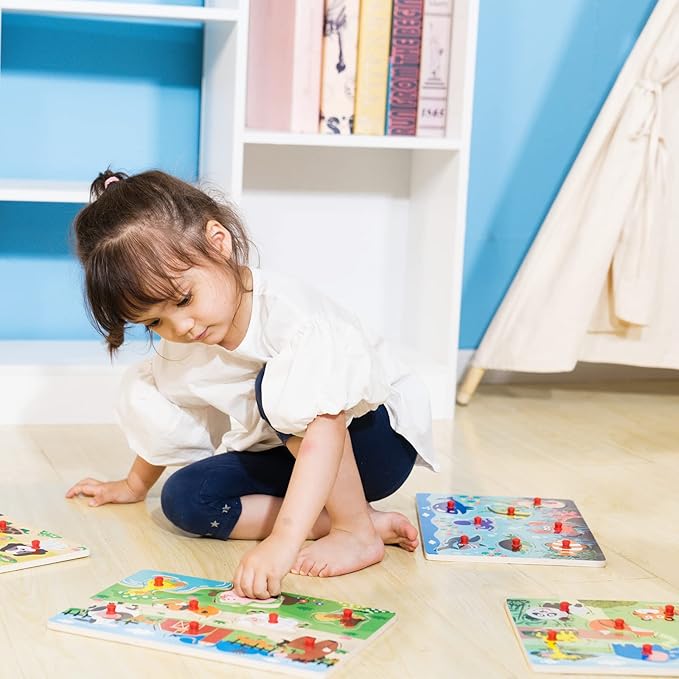 • EARLY DEVELOPMENT: Peg puzzles help toddlers recognize shapes and colors, improve eye-hand coordination, cultivate imagination and creativity, and develop patience and concentration.