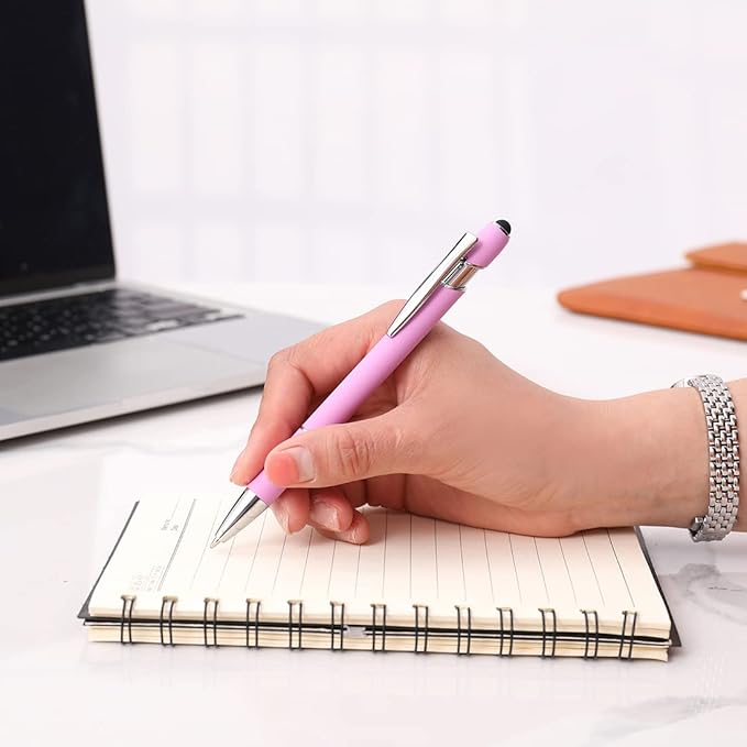 Ballpoint Pen with Stylus Tip, Soft Touch Click Metal Pen, 1.0mm Medium Point, Black Ink, 12 Count(Light Purple)