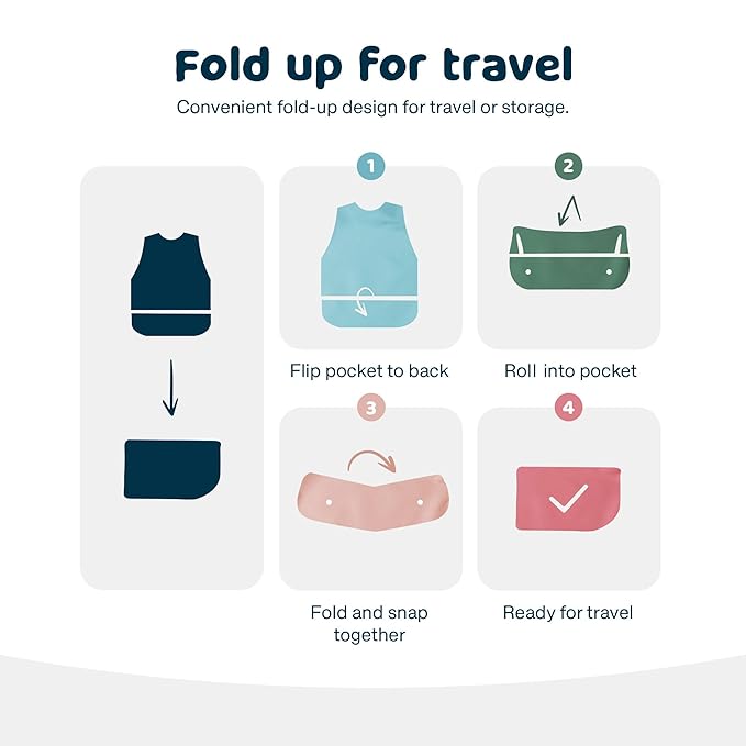 • TRAVEL MUST HAVES: Our baby feeding bib is the ultimate daycare and travel essentials for you and your little one. Soft, machine-washable, and waterproof, our bibs have a no-scratch closure that's gentle on your child while protecting clothes,,floors,high chairs, and tables from messy meals. Bring your baby anywhere with confidence – ​perfect for baby-led weaning and on-the-go toddlers!