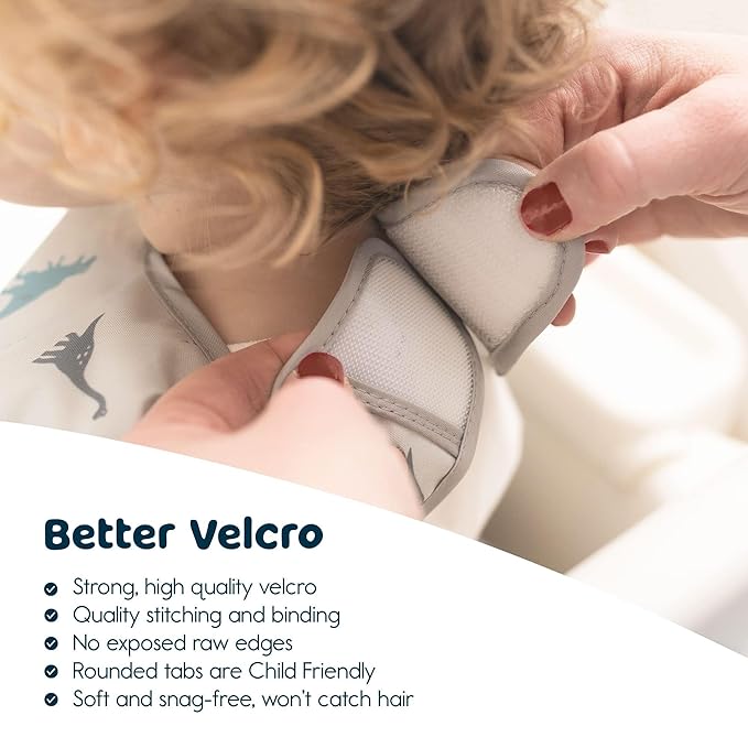 • EASY TO USE: Featuring a tug-proof closure that keeps the bib secure during baby-led weaning yet removes easily, our waterproof bibs won’t snag hair or irritate skin. Perfect for toddlers 1-3 years and messy eaters, the hassle-free design lets you focus on feeding fun instead of scrubbing food stains!