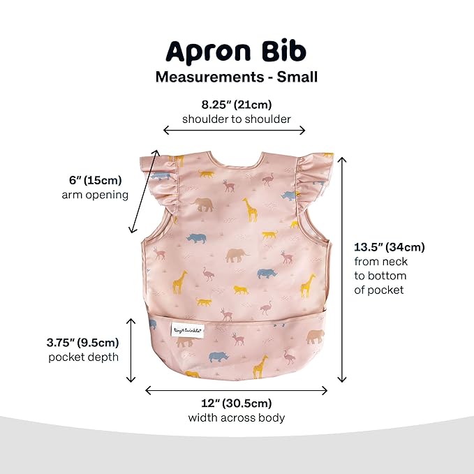 Tiny Twinkle Mess Proof Baby Bib - Waterproof & Lightweight Baby-Led Weaning Apron | 100% Recycled Polyester, Easy Clean & Machine Washable (Petite Safari, Small 6-24 Months)