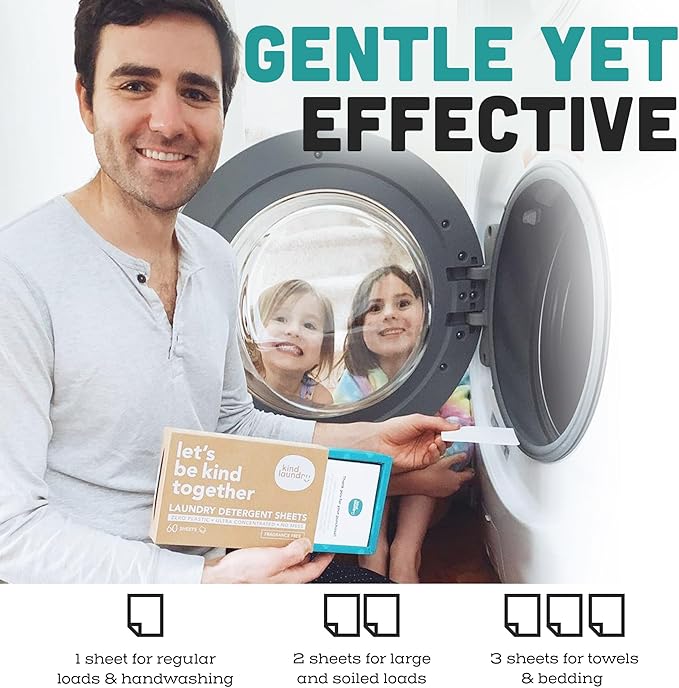 • Provides Strong Cleaning Power - Tackle tough stains with Kind Laundry’s ultra-concentrated laundry detergent sheets! Our laundry sheet is made with a proprietary formula of tea seed oil and powerful plant-based surfactants–no unnecessary fillers and harmful chemicals included.