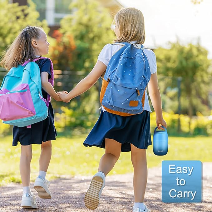• Our insulated food jar has a unique hidden handle that can reduce the volume of the jar and save more space for you. It fits perfectly in school bags and boxes. The hidden handle could also avoid accidentally opening the lid while carrying school bags.