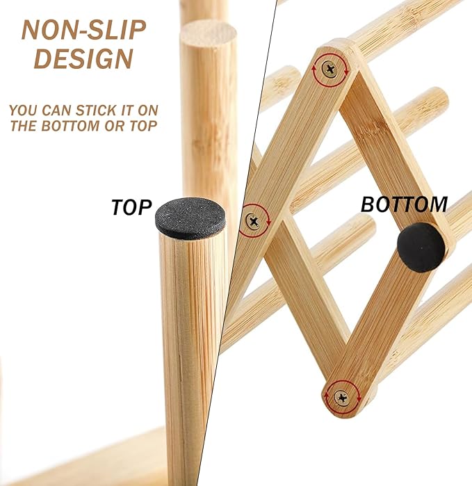 • Well made wooden drying rack. This space saving bottle drying rack is made of sturdy and easy-to-clean bamboo. Surface special treatment makes it feel smooth and crack-free, not easy to deform. Non-fading.