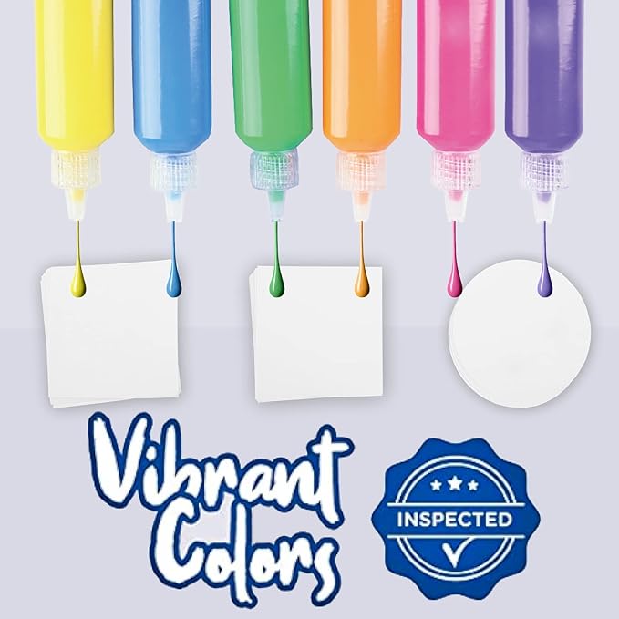 • 🥇How To Use - Your kids will absolutely love this breath-taking kids art spinner set. The 1 D battery-operated kids paint spinner will spin the piece of paper around so your kid can start creating mind-blowing art by simply splashing a few drops of our 6 different liquid neon colors! Rest assured that your little artist will be able to master this innovative spin art toy set effortlessly! Help your little artist craft mesmerizing drawings using the power of science!