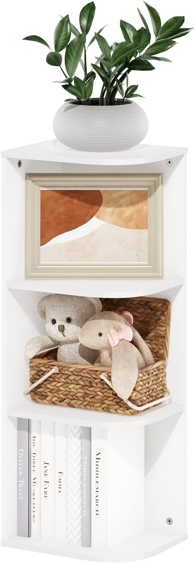 Furinno Pasir 3-Tier Corner Open Shelf Bookcase, White