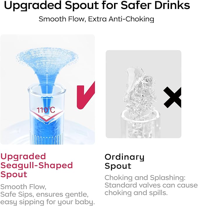 • 【Safety Using】Toddler cups with weighted sippy straw cup design makes the water where the end of the straw will go, allowing baby to drink water in any comfortable position. V-type learning design trains baby's oral movements while effectively preventing coughing and choking.