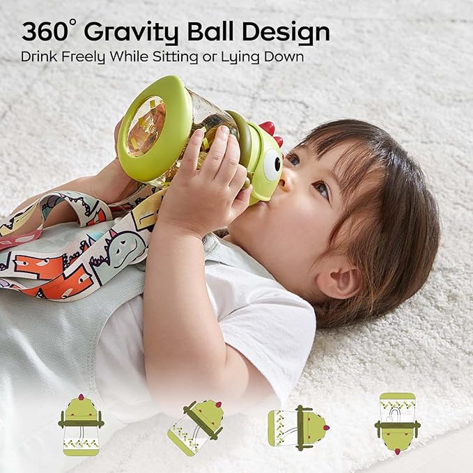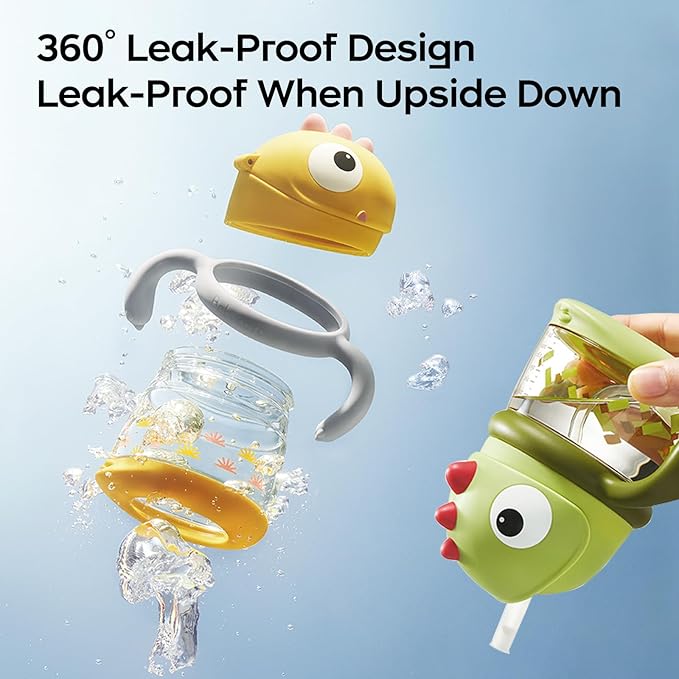 • 【Unique Design】Toddler cup holds 10oz/300ml, with colorful and cute dinosaur shape, handles allow toddlers to carry the bottle easily and make babies fall in love with drinking.Unidirectional air return hole can effectively prevent air from entering.