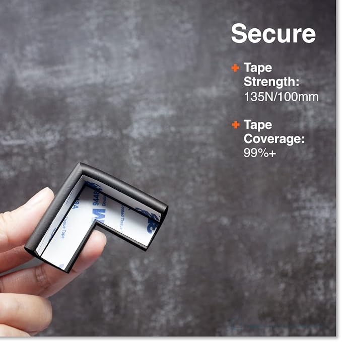 • SECURE ADHESION: Includes authentic easy-to-peel 3M double-sided tape (30 feet of tape for the edge guard, not pre-taped), with 4 corner guards pre-taped. Onyx black color goes well with black or dark color furniture, such as tables, chairs, chests, shelves, stairs and desks. All text and photos/images in this product listing are copyrighted materials. Copyright: 2012 Mayapple Baby LLC, Brooklyn NY, USA. Designed in USA.