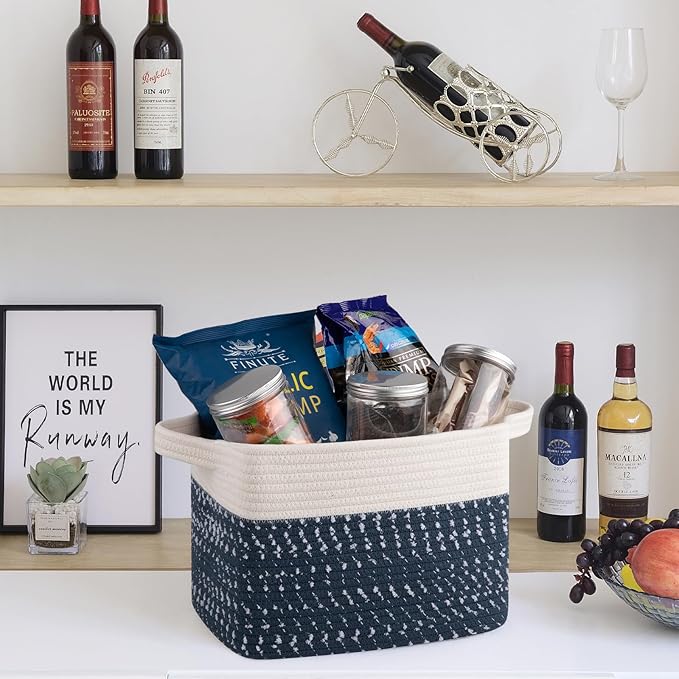 • Unique Design:Small rope basket with foldable design and separate built-In handles for easy portability and store. The handle is made of 3-heeled braided rope, comfortable to the touch, even with heavy items your hand is not restrained.In addition the storage basket available in different unique colors. Provide a nice fine Nordic touch to any room of your house