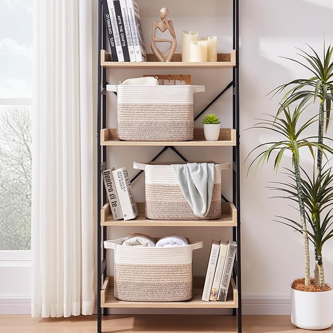 OIAHOMY Storage Basket, Woven Baskets for Storage, Cotton Rope Basket for toys,Towel Baskets for Bathroom - Pack of 3, Gradient Yellow
