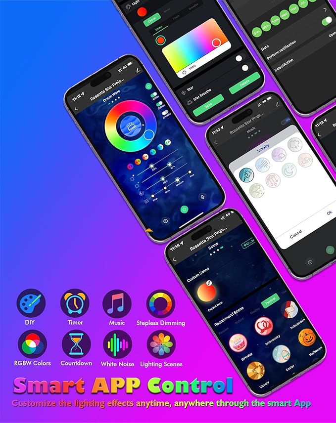 • Great Room Decor and Gift Ideas - At Rossetta, we value our customers and always try our utmost to provide you with the best kind of service, and customer health and safety assurance. All star projector night lights are FCC, RoHS and CE certified. Designed for bedroom, kids room, home cinema, gaming room, ceiling, wall, spa, office, home decor, house party decorations, Christmas decorations, wedding, birthday and anniversary. Best gifts for any occasion and cool present for family and children.