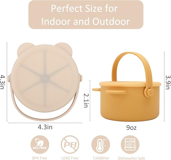 • 👶A wonderful Present: The silicone snack cups are not only great at home, but it also fits easily into your bag - you will get plenty of use from it as it can easily grow with your child through toddlerhood and pre-school age. Additionally, it makes an excellent gift for baby showers and new parents.
