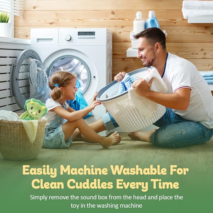 • ✅ BUILT WITH SAFETY IN MIND: This musical plush toy is not only built to last, but it's also designed with safety in mind. Each baby snuggle toy is allergy-friendly and BPA-free. To clean it, remove the sound box from the head and place the toy in the washing machine. We recommend to wait until your child is at least a year old before allowing it to join naptime or bedtime.