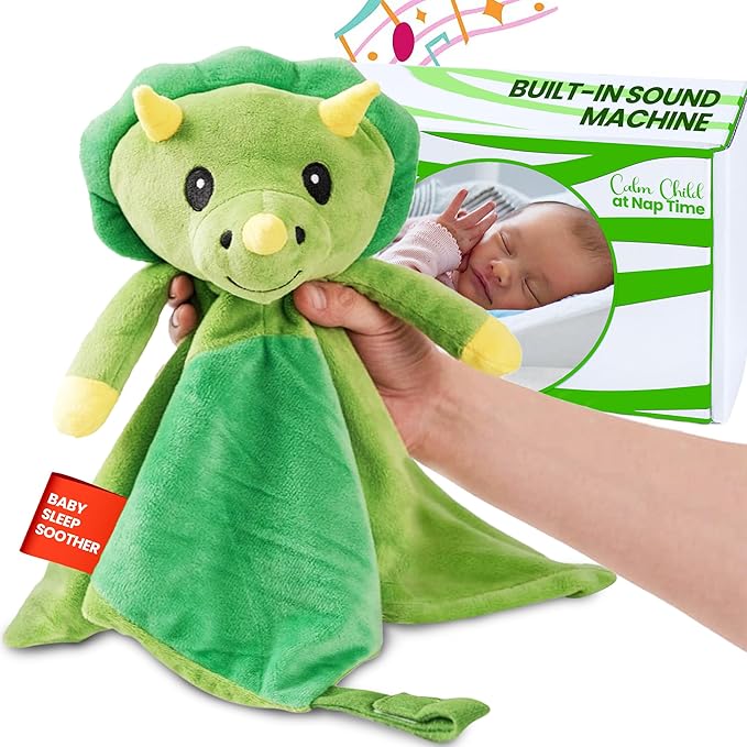 • ✅ FALL ASLEEP FASTER: This stuffed animal for babies delivers a three-in-one approach to help your little one to fall asleep faster and stay asleep longer. The combination of auditory and tactile comfort helps drown out sounds nearby and brings a sense of familiarity and comfort. The wide-bodied design also serves as a children's stuffed animal toy and security blanket that is a fleece material and wrinkle-resistant. You can also attach a pacifier to the blanket using the built-in hook and loop.