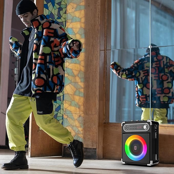 • 【Versatile and Great partner for gatherings】The karaoke machine is versatile and simple to operate,Bluetooth connectivity makes it easy to stream music from your phone or other devices, The karaoke machine is designed for entertainment activities. You can enjoy your favorite music anytime, anywhere. Designed for fun, the party speaker makes the perfect addition to any party or gathering, the perfect partner for any event.