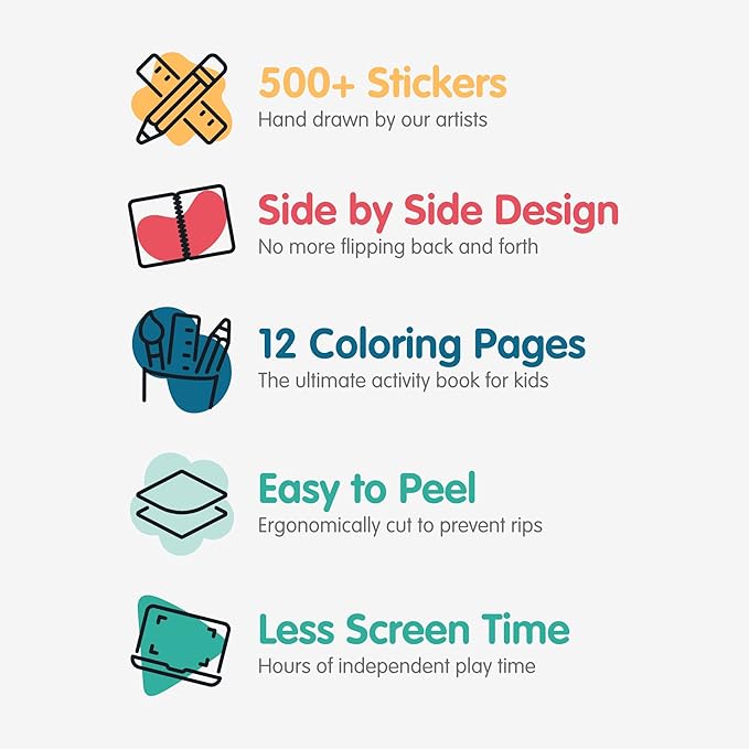 • On the go fun: Keep kids busy while traveling with independent, quiet, screen-free fun. Our lay-flat sticker activity books make the best plane travel essentials for toddlers, create the perfect mess-free crafts for car road trips with little ones, and keep kids entertained at restaurants. Leave the tablet at home and let their imaginations soar on your next family adventure.