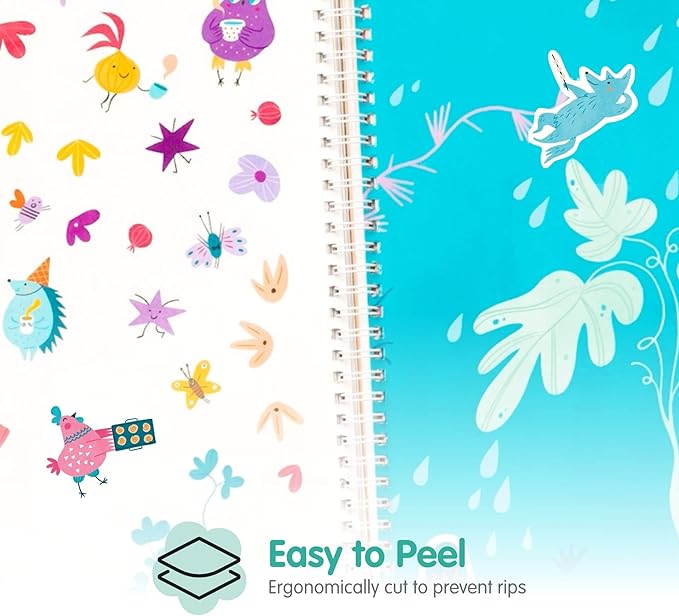 • The original lay-flat sticker book: We created the side-by-side sticker pages & scenes with tiny hands in mind. The spiral binding allows for more time creating and less time flipping back and forth. Your kids will stay busy for hours crafting different scenes with these easy-to-peel stickers. Our spiral-bound sticker and coloring activity books are perfect for ages 2-4 and beyond!