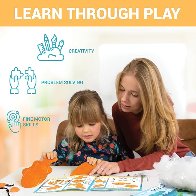 • ๐ŸŽจ CONTAINS EVERYTHING YOU NEED: This sewing kit contains everything you need (yes, really everything) so you can get started straight away on these fun craft projects. This 165+ pcs set includes 8 pre-cut felt projects, 7 colors of embroidery thread, 10 pairs of craft eyes, plastic and metal sewing needles, 40 straight pins, needle threaders, scissors, stuffing, and easy to follow instructions.