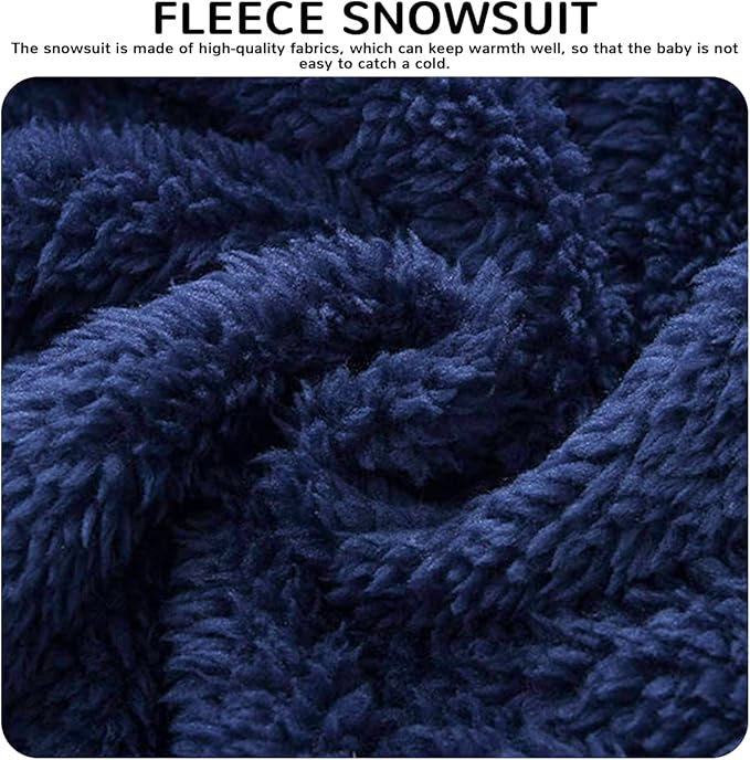 • ❤♥Material: This baby snow suit made of high quality polyester fiber, double lining, fine polyester fiber cares for baby's delicate skin. The newborn winter outfit hoodie whole body jumpsuit design, keeps the baby's head and ears inside and warm when outing. The toddler boys & girls snow suit accompanies the baby through the cold winter.