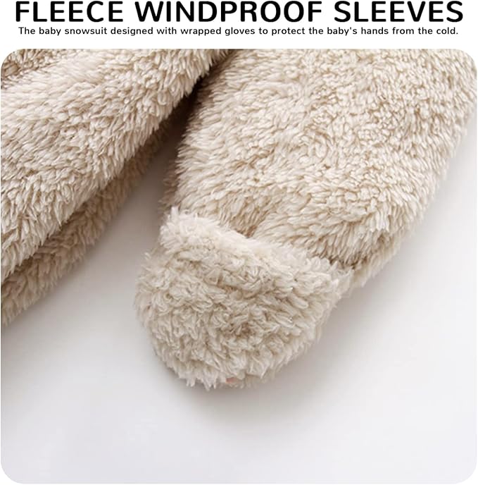 • ❤♥Material: This baby snow suit made of high quality polyester fiber, double lining, fine polyester fiber cares for baby's delicate skin. The newborn winter outfit hoodie whole body jumpsuit design, keeps the baby's head and ears inside and warm when outing. The toddler boys & girls snow suit accompanies the baby through the cold winter.