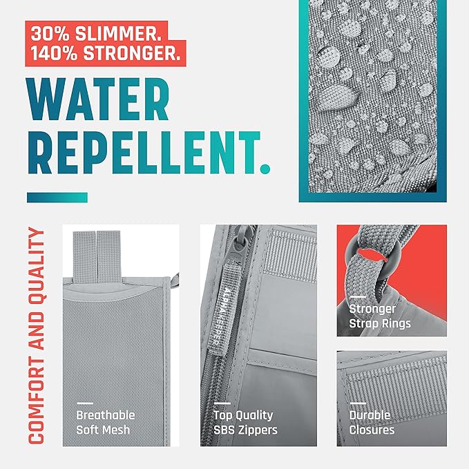 • Ultra-Slim and Comfortable Travel Neck Wallet: Innovative, breathable, moisture-resistant fabric for security and comfort during international travel. Includes new RFID blocking material for added protection.