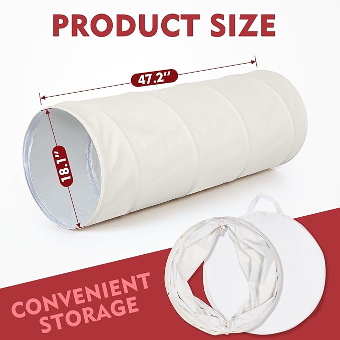 • 【Multifunction Play Tunnel】Not only can parents put safe obstacles in the kids play tent, such as pillows and plush toys, allowing children to experience the"obstacle course" game, but also play the "Peekaboo" game with their friends. Tunnel crawl is also suitable for Pets, Cats, Dogs, and so on.