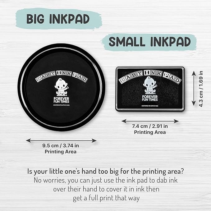 • WRIGGLE-PROOF AND HASSLE-FREE - Press the ink pad onto a foot, hand (or paw!), then press the foot or hand onto any piece of paper or card - two quick steps for a fast and easy lasting memory. Works great for baby feet, kids' hands, even pet paw prints. Ideal for no-mess fingerprinting, baby wipes, and toddler projects.