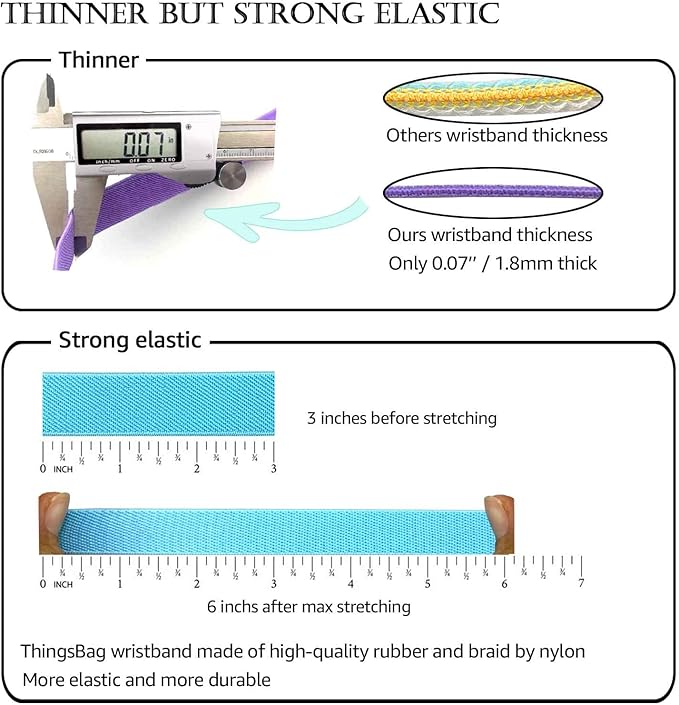 • πŸ‘ LIGHTER and THINNER : ThingsBag Airtag Wristband is thinner and lighter than others. Its weighted only 0.29 oz/8g, and the band strap is only 0.07 inches thick.