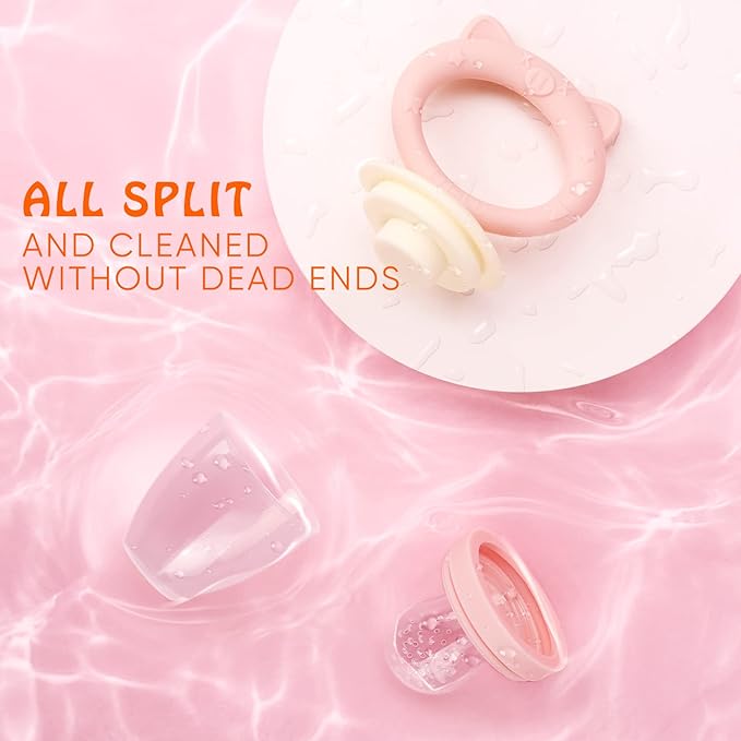 • 【EMBEDDED SNAP DESIGN】HAOBAOBEI pacifier for fruit teething is designed with built-in seal ring snap lock, 360°double seal full wrap to prevent spillage, seal tightly and difficult to open. The unique design of our food pacifier for babies can effectively prevent juice from leaking out caused by accidental opening by the baby, which can protect the health and hygiene of the baby.