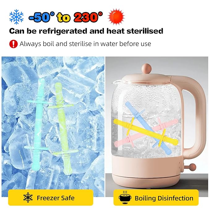• Safe: Made of high-quality 100% food-grade silicone, it is completely safe for children. Choking Hazard Small Parts! The teether tube should be used under adult's supervision