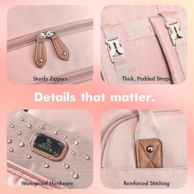 • Durability to last: Our maternity backpack diaper bag is crafted from lightweight and waterproof polyester fabric. Includes spill-resistant and easy-to-clean lining. You don't need to fear spilled milk or water. Non-fraying stitching, easy-tote top handle, back ergonomic design and thick padded cushioned shoulder straps will release stress and bring comfort while carrying.