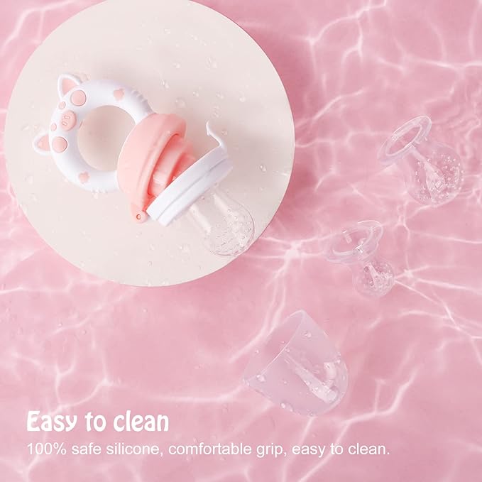 • 【SAFE SILICONE POUCH HOLES】HAOBAOBEI fruit feeder is made from 100% food grade silicone. BPA free. Lead, phthalates, latex free. 2mm silicone pouch hole, the juice is even and not easy to be blocked. When the baby bite the feeder pacifier, the food enters the baby's mouth in the form of fine and digestible drops, which will not choke the baby and avoid the risk of suffocation.