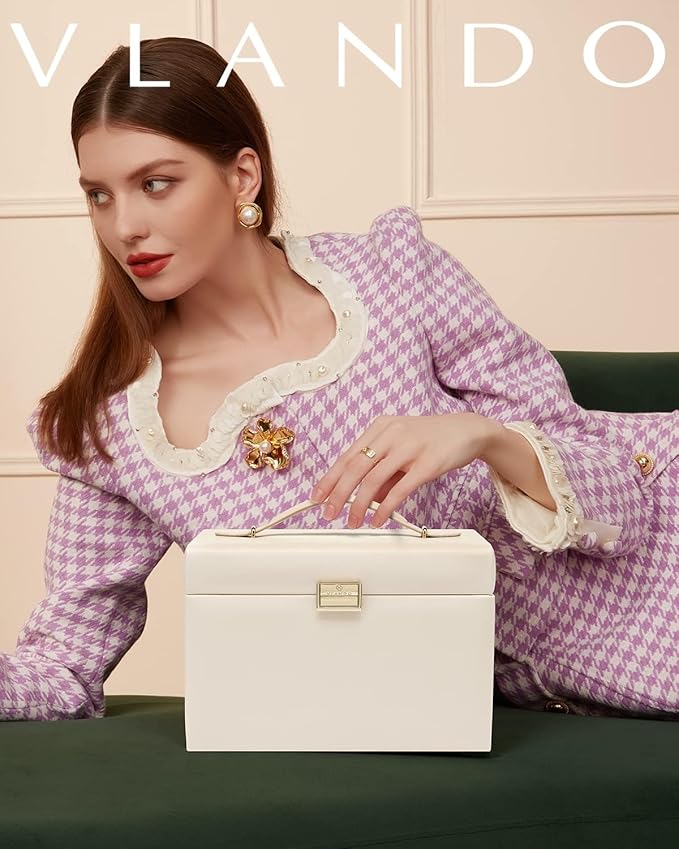 • Crafted with High-Quality Materials - Vlando luxurious synthetic leather jewelry box is resistant to moisture and scratches. The sleek exterior and premium velvet interior lining make it a stunning addition to any room
