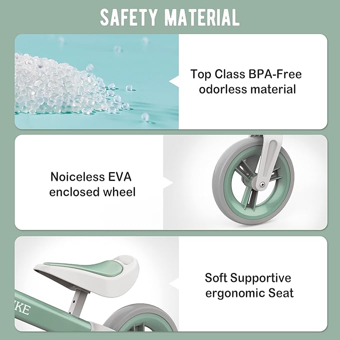 • A few minutes installation: The baby balance bike is easy to assemble and only takes a few minutes to put together.You don’t need to have sophisticated or complicated tools at all.