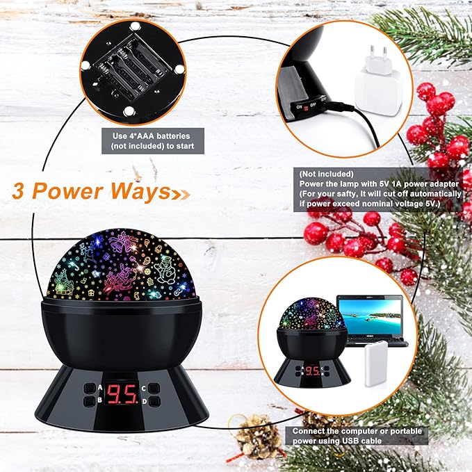 • 2 Projector Film Design: I comes with 2 film options: Dinosaur patterns and Christmas element , easy to change the patterns films lenses which is equivalent to buying two lamps with different projections for the price of one lamp. 360° rotation LED light projector delivers 17 lighting effects, getting you to immerse in the scene! Please take off Christmas element film cover when you use the Dinosaur film.