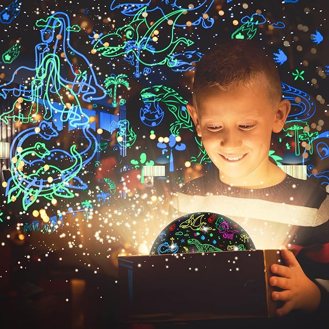 • Dinosaur Light for Kids 3-5: I am a Dinosaur night light projector is a perfect gifts for boys age 5, i will brighten up any room, brings a lot of happiness to the children, soft and not glaring, Let them fall asleep quickly and peacefully. I can engage the children who loves Dinosaur toys , Ideal Toys Gift for 3 to 8 Year Old Toddlers boys.