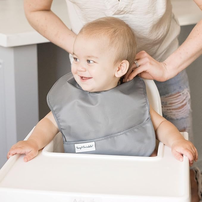 • BABY ESSENTIALS MUST HAVES: Tiny Twinkle presents essential baby feeding supplies with our baby feeding bibs.Crafted from soft,lightweight,water-repellent recycled polyester,these waterproof bibs for baby boy or girl are designed to keep messes at bay.Our baby food bibs feature a catch-all pocket to capture spills,ensuring your little one stays clean during mealtime.